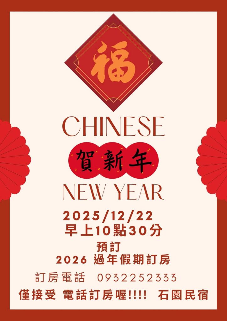 飛逝的時光加上四季轉換,2025年即將過去,2026即將到來。 即將開放2026春節假期的訂房 ▼訂房時間▼ […]